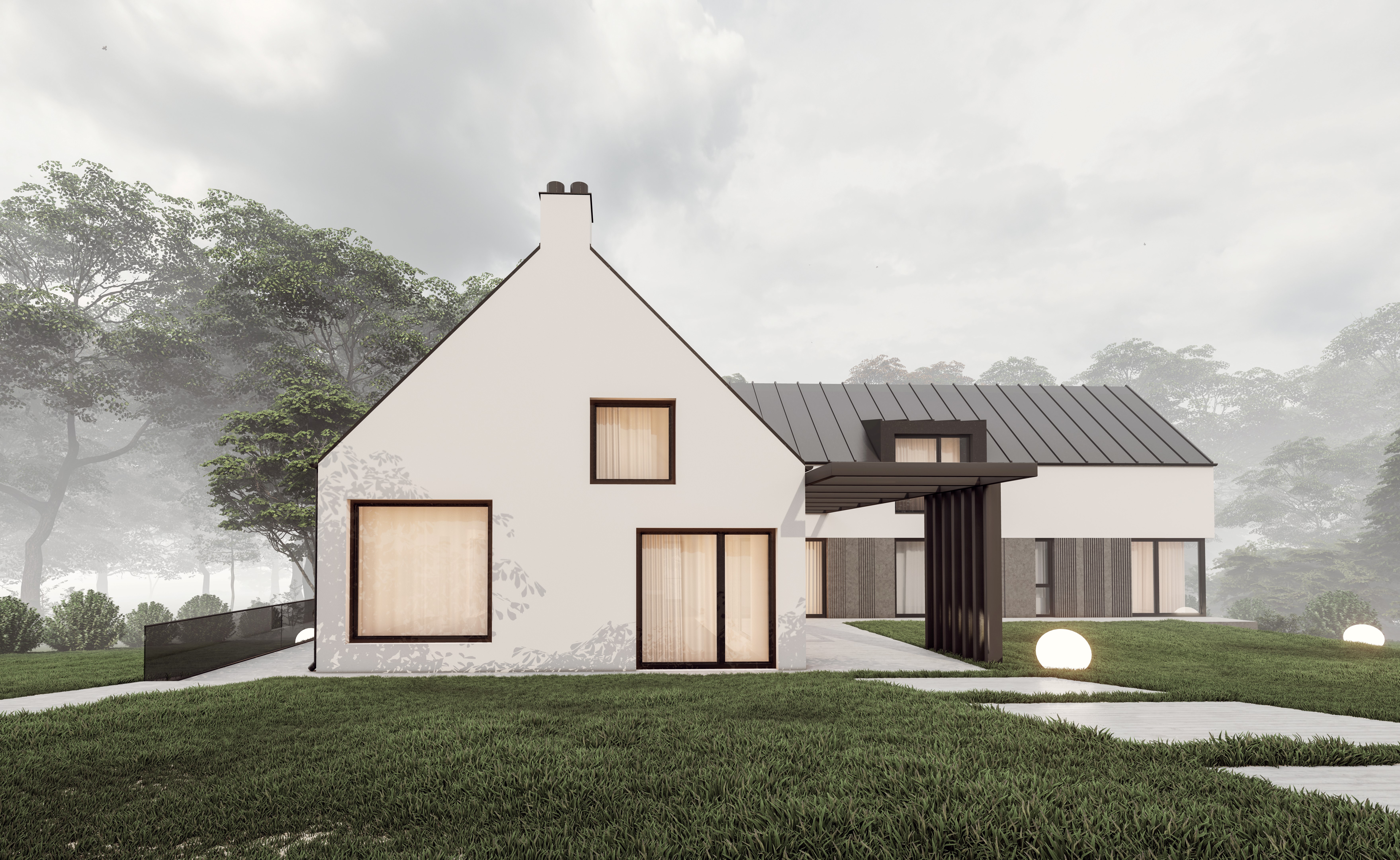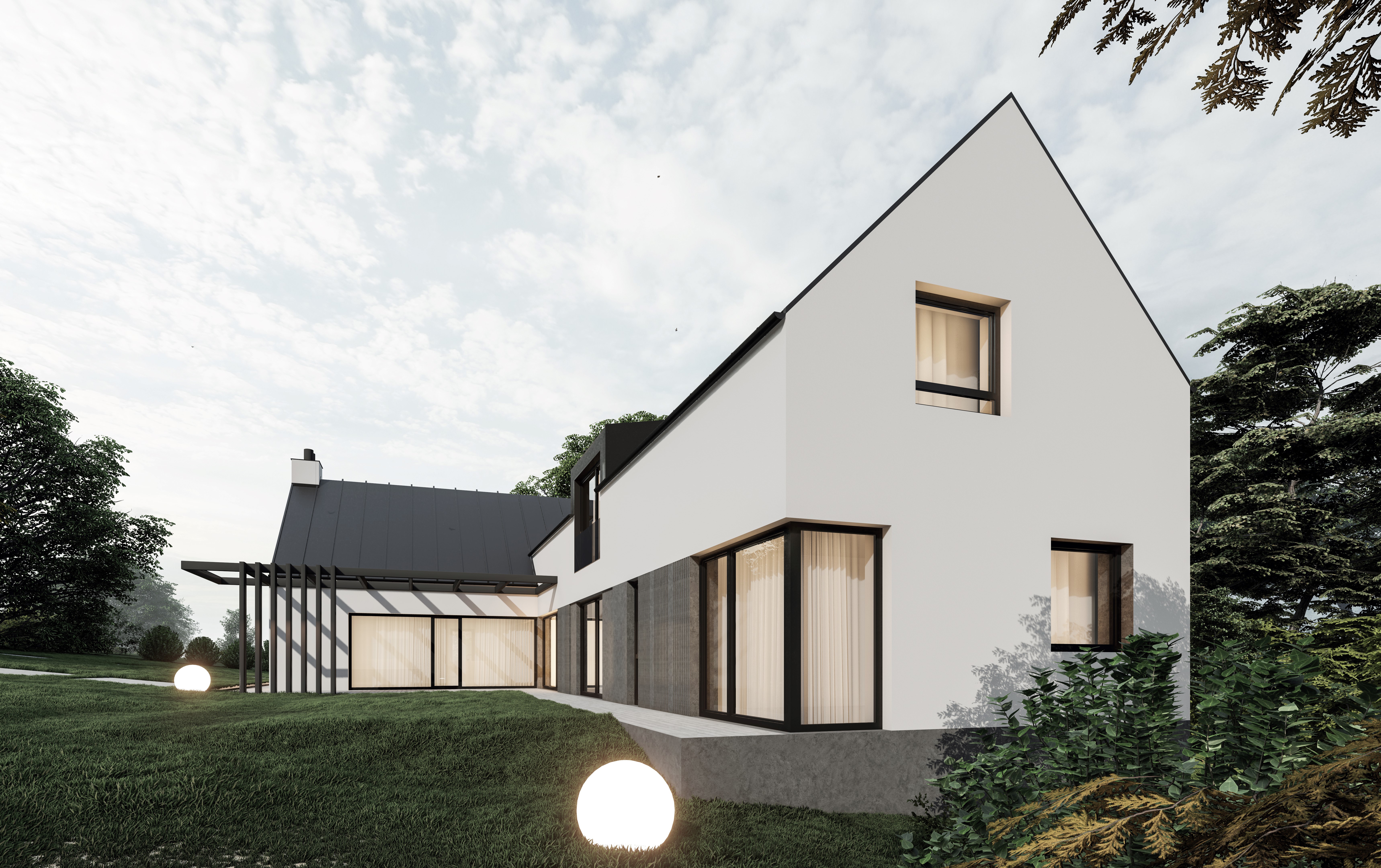 Inside, the house offers a sequence of light-filled spaces that blend intimacy with openness. Living areas are oriented toward the mountains, drawing nature into the daily experience, while private rooms provide quiet, sheltered retreats. The atmosphere is defined by simplicity, clarity, and a strong sense of belonging—an ideal refuge where modern living meets the timeless beauty of Zărnești’s hills.