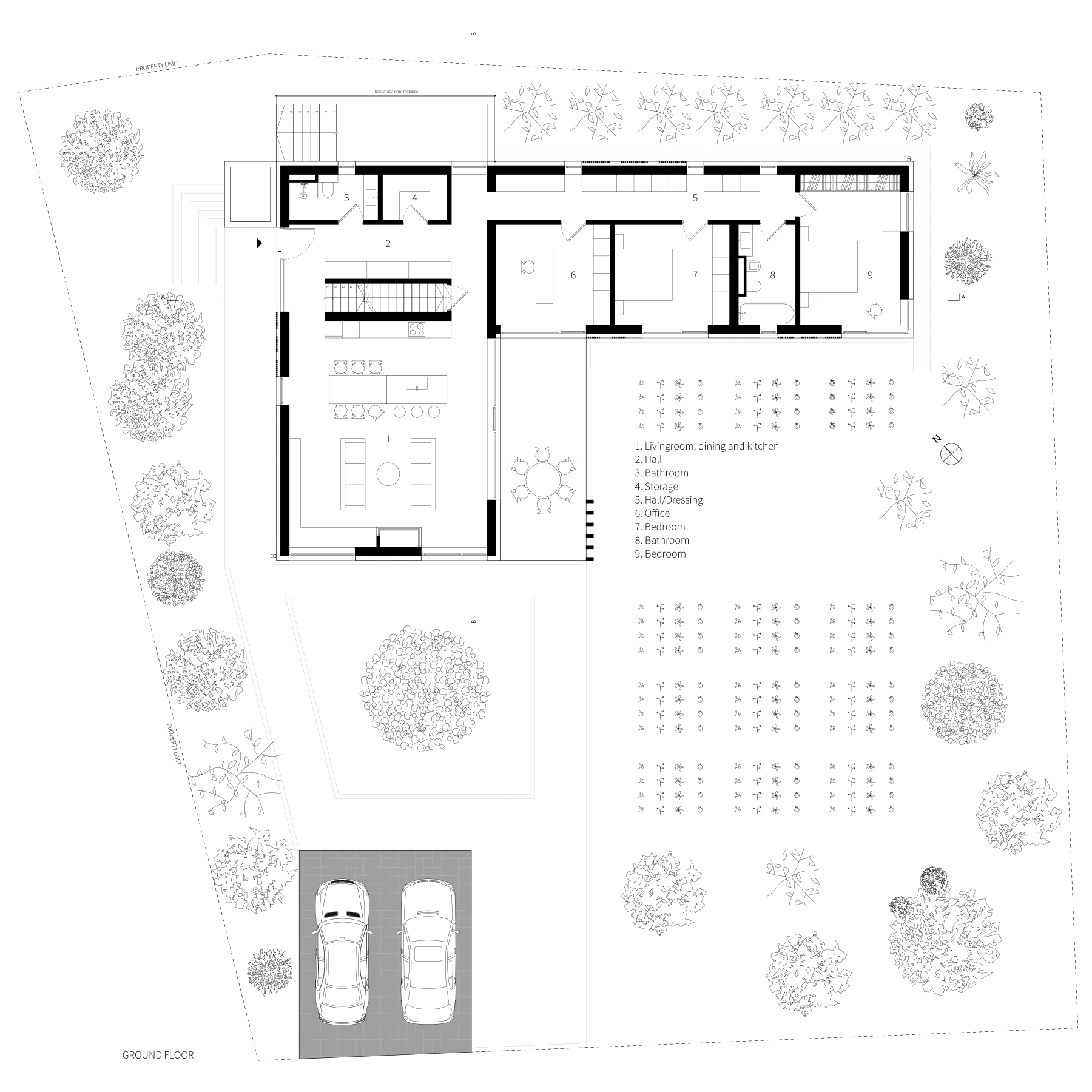 The design concept takes advantage of the site’s unique topography and panoramic views. Large openings frame the mountains and valley, while the house’s geometry follows the natural contours of the hillside. The architectural language combines clean, modern lines with warm, tactile materials, creating a residence that feels both rooted in place and open to its landscape.