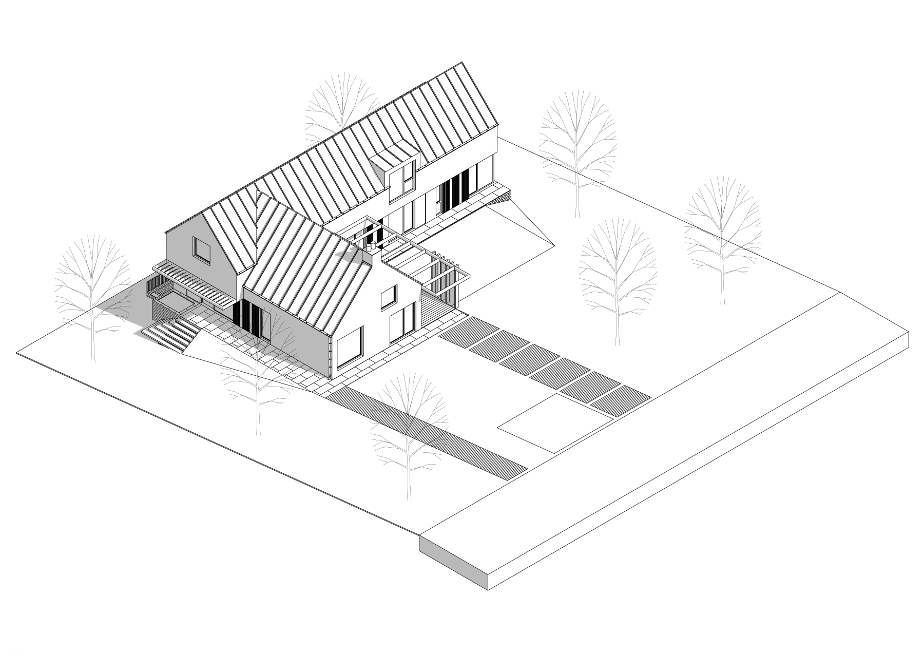 Inside, the house offers a sequence of light-filled spaces that blend intimacy with openness. Living areas are oriented toward the mountains, drawing nature into the daily experience, while private rooms provide quiet, sheltered retreats. The atmosphere is defined by simplicity, clarity, and a strong sense of belonging—an ideal refuge where modern living meets the timeless beauty of Zărnești’s hills.